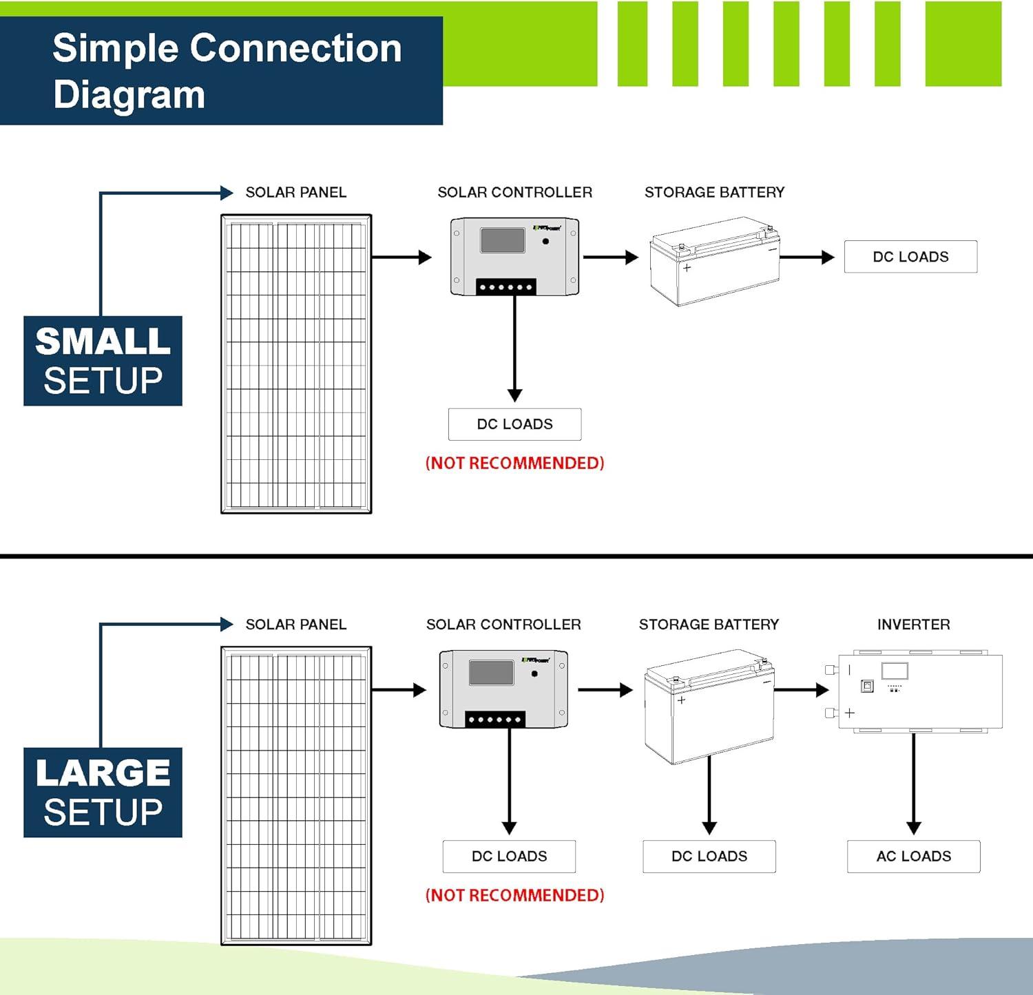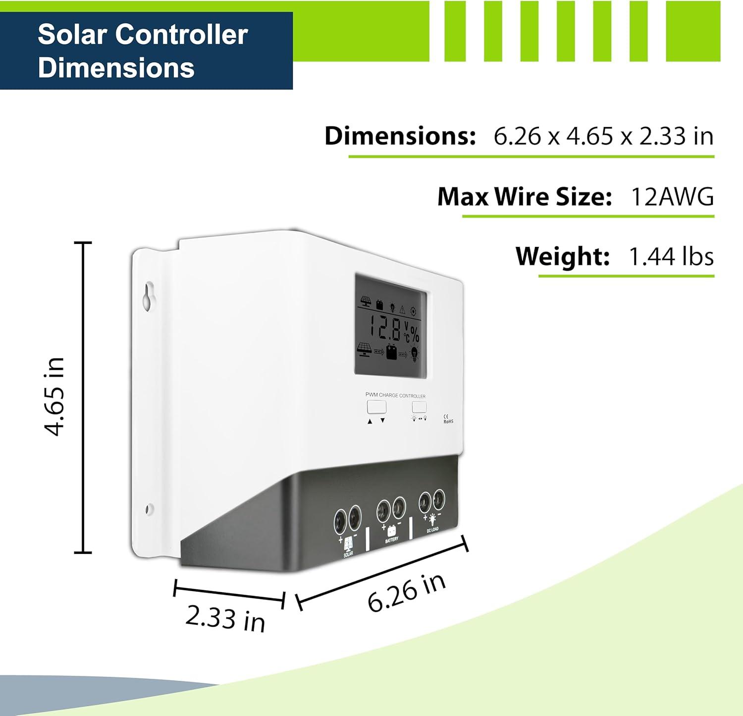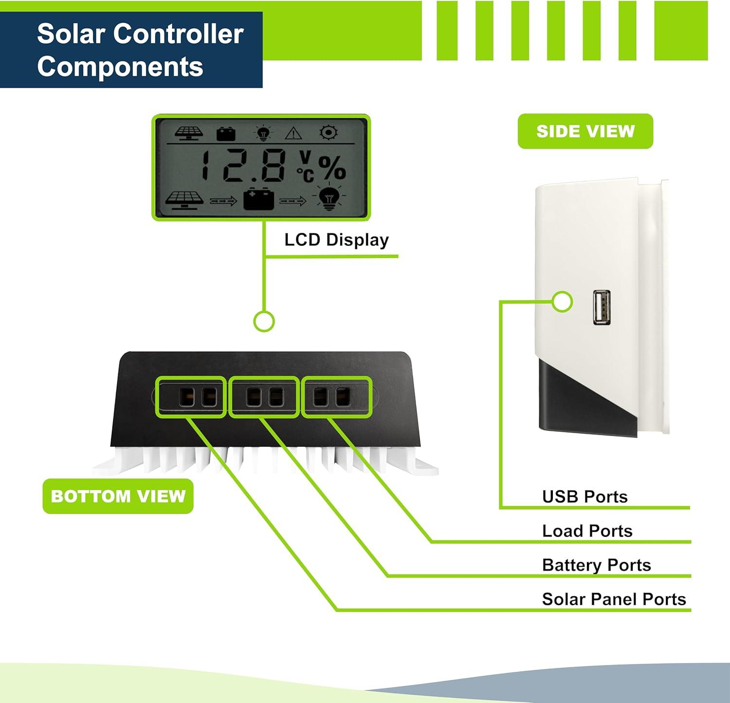 System Detect: The 20A PWM controller automatically recognizes 12V and 24V systems for quick setup. Compatible with LiFePO4/ Lithium, AGM, Gel, and Flooded batteries.
