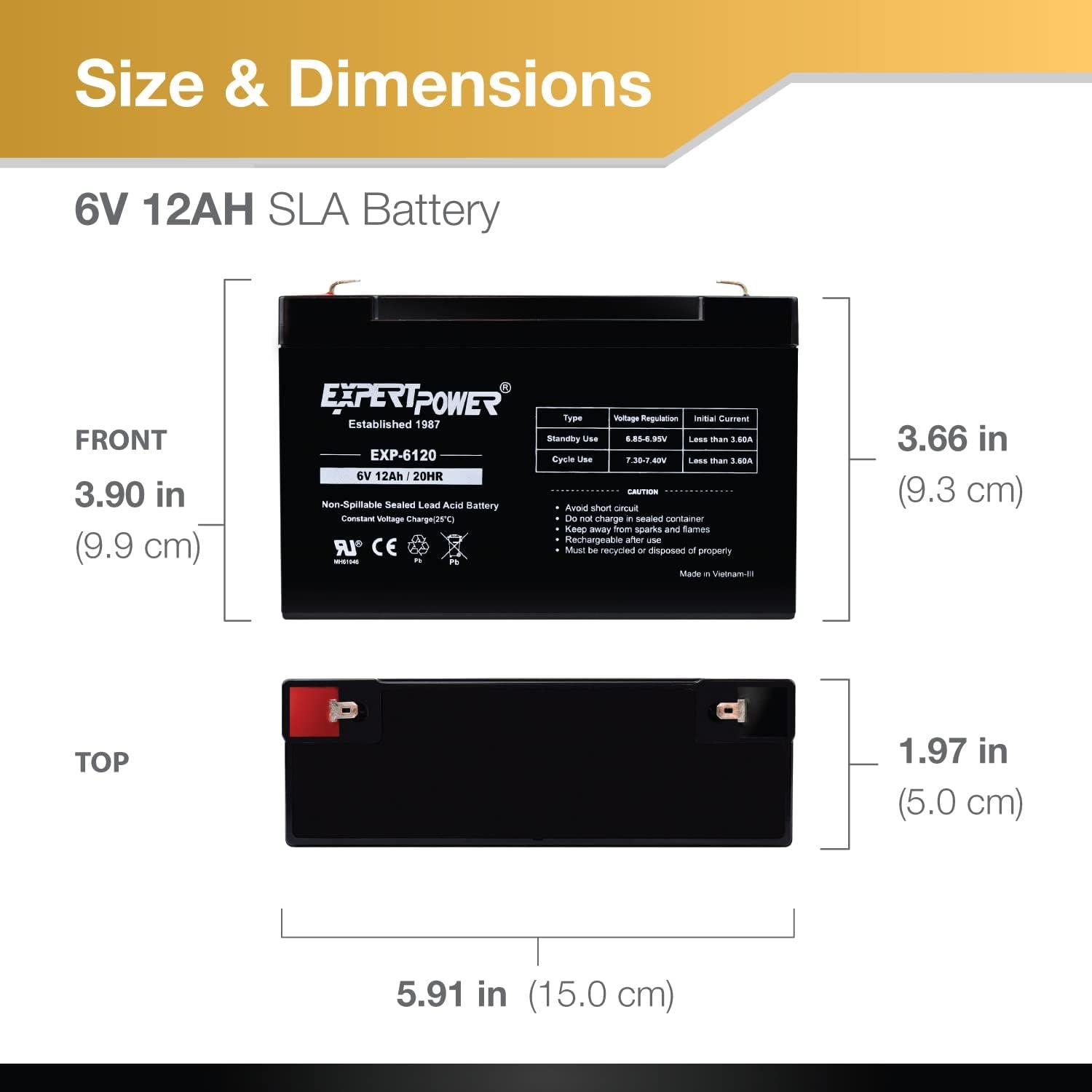 Battery Type – 6 Volt 12 Amp / 20 Hour Sealed Lead Acid Battery With F1 Style Terminals