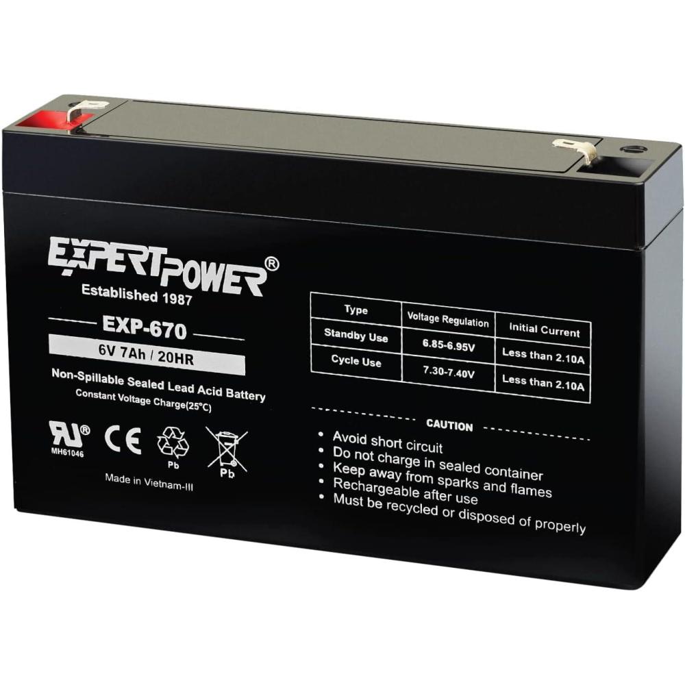 ExpertPower® 6Volt 7AH Sealed Lead Acid (SLA) Battery with F1 Terminal EXP670 Replaces Powertron PEA6V65F3 Enduring 3FM7(6 V 7AH)