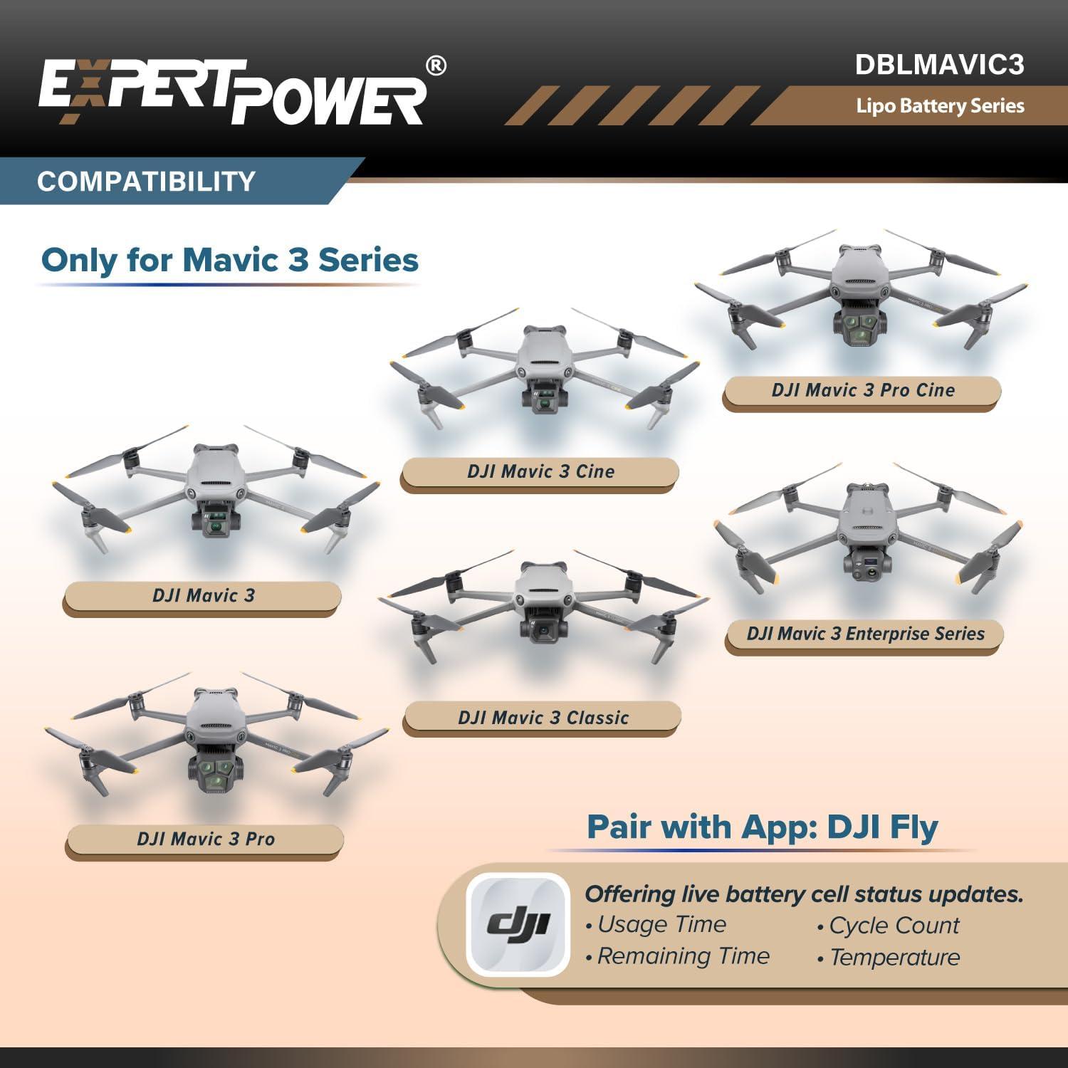 ExpertPower High Capacity (15.4V 5000mAh) Intelligent Flight Replacement Battery for DJI Mavic 3, DJI Mavic 3 Pro, DJI Mavic 3 Cine, DJI Mavic 3 Classic, and DJI Mavic 3 Enterprise Series(2 Batteries)